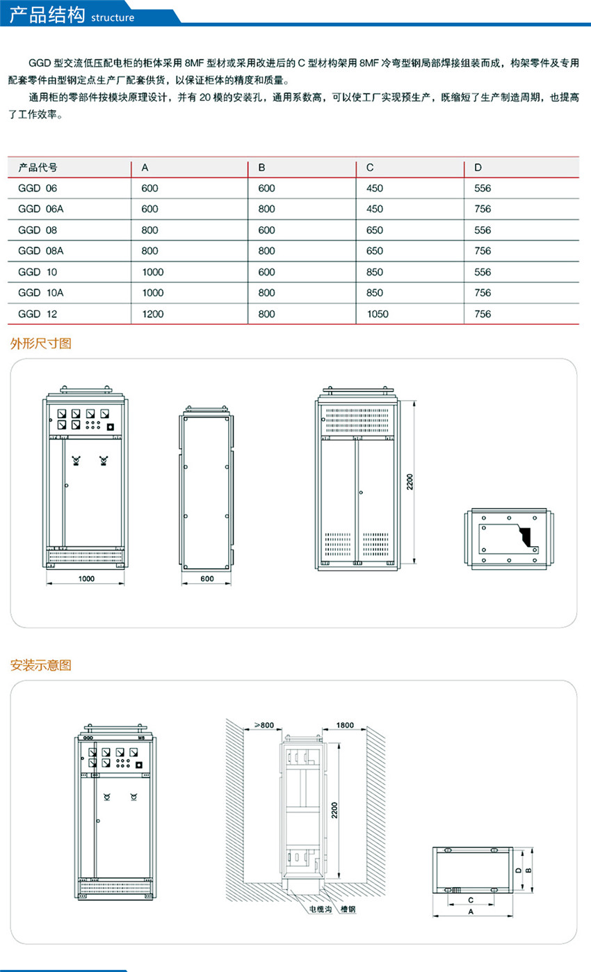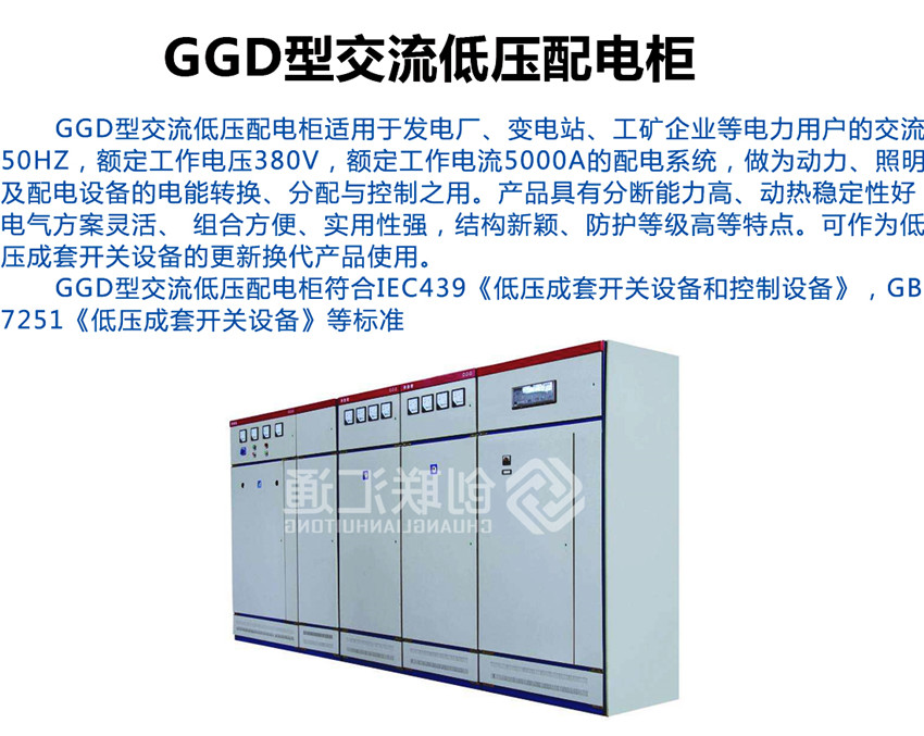 GGD型交流低壓配電柜是根據(jù)能源部主管上級,廣大電力用戶及設(shè)計(jì)部門的要求,本著安全、經(jīng)濟(jì)、合理、可靠的原則設(shè)計(jì)的新型配電柜。產(chǎn)品具有分?jǐn)嗄芰Ω撸瑒?dòng)熱穩(wěn)定性好,電氣方案靈活、組合方便,系列性、實(shí)用性強(qiáng),結(jié)構(gòu)新穎、防護(hù)等級高等特點(diǎn),可以作低壓成套開關(guān)設(shè)備的更新?lián)Q代產(chǎn)品使用。并且廣泛適用于發(fā)電廠、變電所、工業(yè)企業(yè)等電力用戶作為交流50HZ,額定工作電壓380V,額定電流至3150A 的配電系統(tǒng)中作為動(dòng)力,照明及配電設(shè)備的電能轉(zhuǎn)換、分配與控制之用。該產(chǎn)品分?jǐn)嗄芰Ω?,額定短結(jié)構(gòu)新穎等特點(diǎn)。該產(chǎn)品是我組裝式、固定面板開關(guān)柜的代表產(chǎn)品之一。