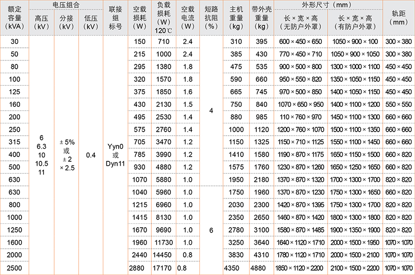 2、本系列變壓器與SCB9型相比,空載損耗、空載電流和噪聲更低;