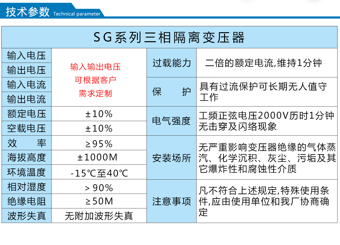 廣泛用于進(jìn)口重要設(shè)備、機(jī)密機(jī)床、機(jī)械電子設(shè)備、醫(yī)療設(shè)備、整流裝置、照明等,安裝場(chǎng)所應(yīng)無嚴(yán)重影響變壓器絕緣強(qiáng)度的氣體,蒸汽,化學(xué)性沉積,污垢,導(dǎo)電塵埃及無其他易爆易燃易腐蝕的物質(zhì)。