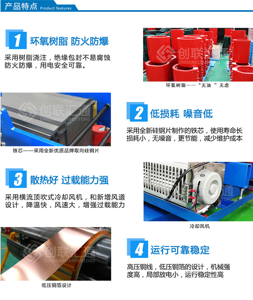 3、結構堅固,SCB11干式變壓器繞組采用環(huán)氧樹脂澆注固化成型,機械強度高,抗短路能力強。