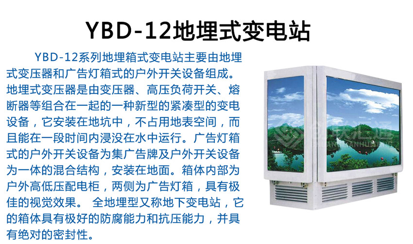 YBD-12系列地埋箱式變電站(簡稱地埋式箱變),是在充分研究和探討現(xiàn)代城市建設(shè)和管理的基礎(chǔ)上,新開發(fā)出的新一代箱式變。其主體部分或全部埋入地下,占地很少,甚至不占地,視覺效果非常好,有效解決了城市用地緊張和城市牛皮癬的矛盾,與周邊環(huán)境和諧統(tǒng)一,備受廣大專家和用戶的推崇。地埋箱式變電站是指該箱式變電站的成套裝置全部安裝于一個全密封的箱體內(nèi)部并把整體設(shè)制于地平面以下,它和地面上箱式變電站,內(nèi)部設(shè)備是相同的,同樣是由10KV輸入電壓經(jīng)變壓器降為400/220V配電電壓再送配至使用負荷點,可用于環(huán)網(wǎng)配電系統(tǒng),也可作為放射式電網(wǎng)終端供電的變電站。這種全地埋型又稱地下變電站,它的箱體具有極好的防腐能力和抗壓能力,并具有絕對的密封性。