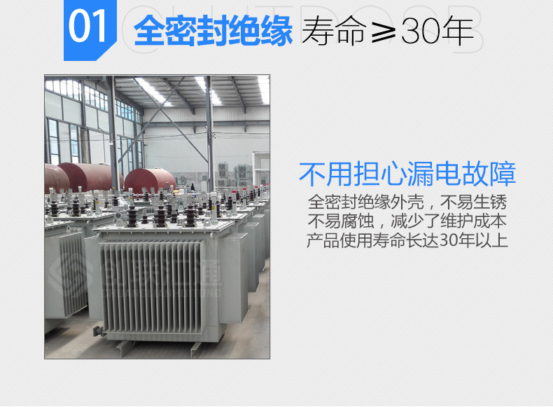4.變壓器為全密封結(jié)構(gòu),延長使用壽命,免吊芯,免維護(hù)。