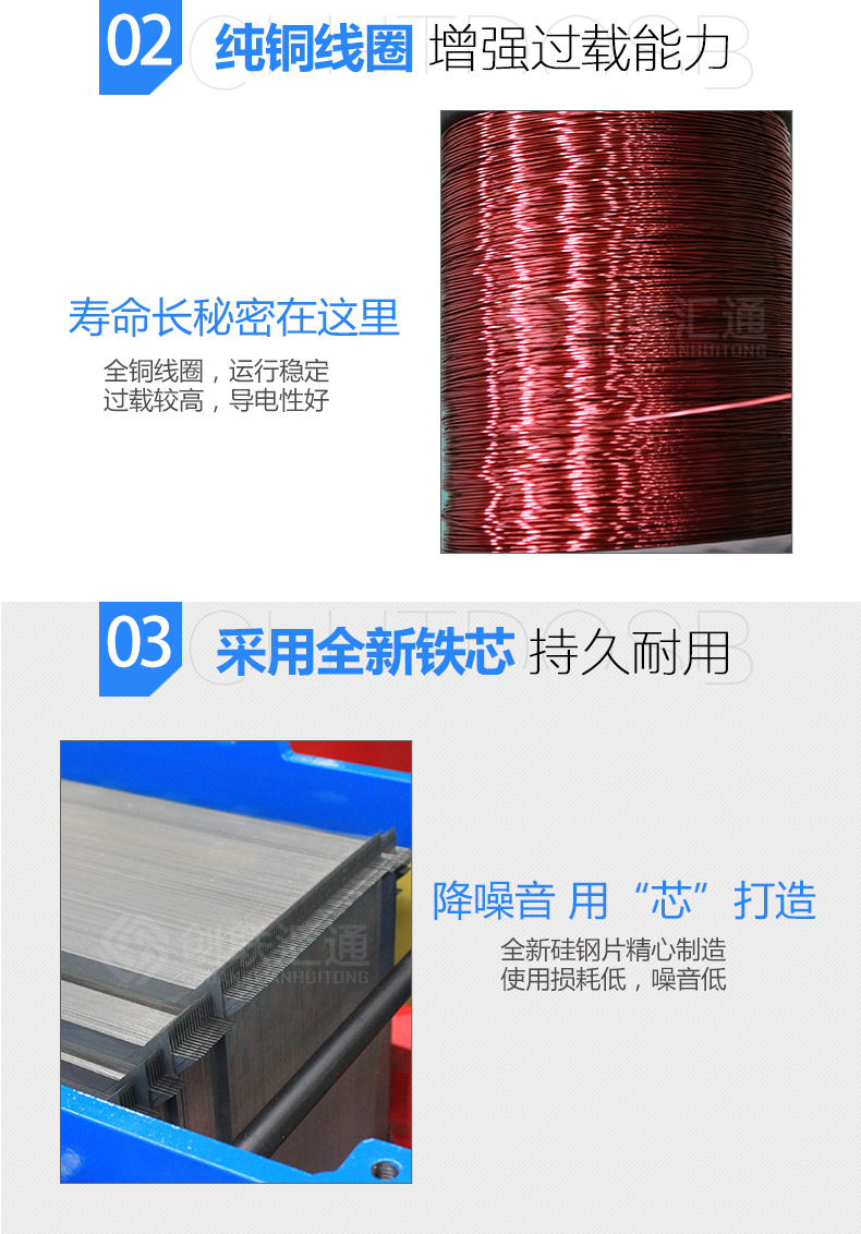 1.變壓器鐵芯采用進口 冷軋硅鋼片疊積而成,大大降低空載和空載電流,并對鐵芯進行綁扎,保證鐵芯的緊實度,降低噪音。