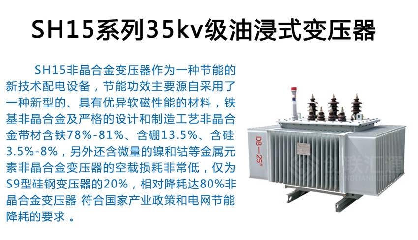 SH15非晶合金變壓器作為一種新一代節(jié)能產(chǎn)品,可以普遍適用于住宅小區(qū)、學校、工礦企事業(yè)單位以及社會公共設(shè)施??稍趹魞?nèi)(外)使用,容量在315kVA 及以下時可安裝在桿上,海拔高度不超過1000m。
